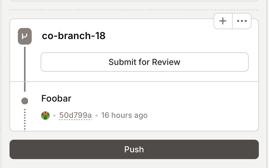 You will now have a "Submit for Review" button on each branch which you can use to create a Merge Request.